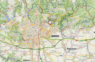 - za zády, cca 250m, 2 vysílače, O2 a vysílač Hády